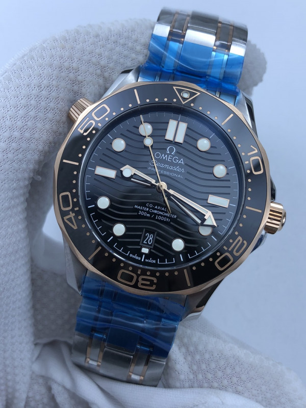 (준비완료/특급배송/예상수령7일)NO.495/VS공장 오메가 씨마스터 다이버 300 로즈골드 콤비 블랙다이얼 브슬