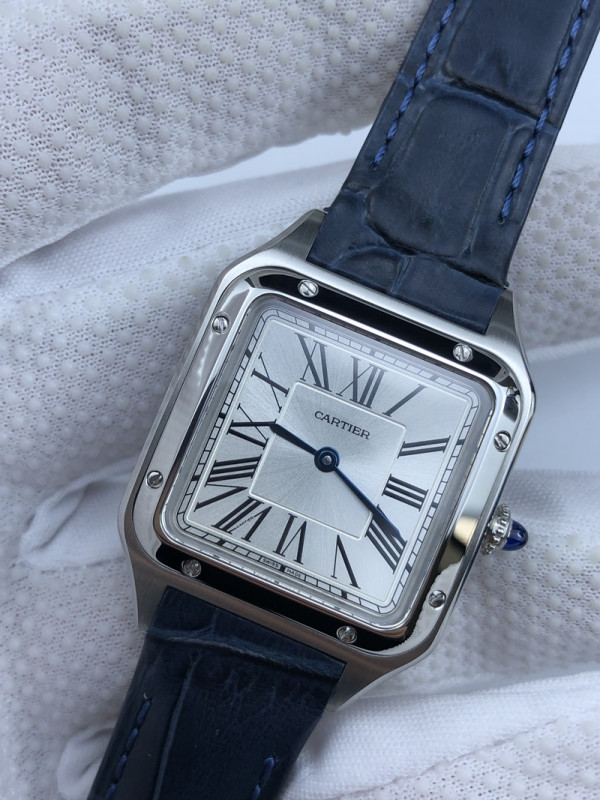 (준비완료/특급배송)NO.923/AF공장 산토스 27.5MM 실버다이얼 블루악어가죽스트랩 > 쇼핑
