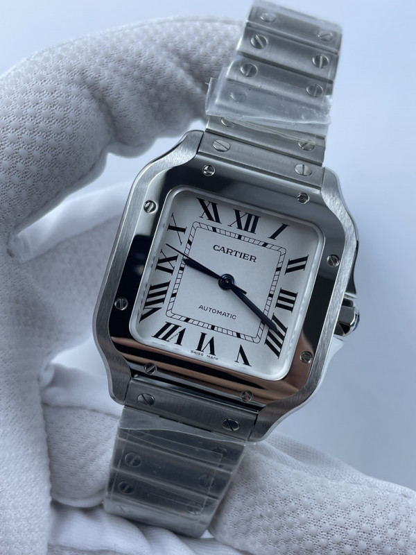• (준비완료/특급배송)NO.1187/V6공장 까르띠에 산토스 2018 미디움 스틸 화이트다이얼 스마트 링크 브슬
