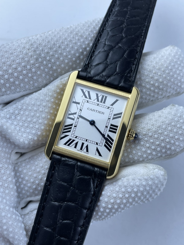 (준비완료/특급배송)NO.1726/K11공장 까르띠에 탱크솔로 27MM 가죽 옐로우골드